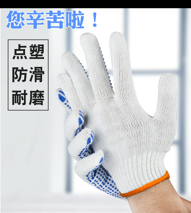 和讯自有产品 劳保线手套加厚白线手套挂胶线手套耐磨棉线手套机械搬运线点手套 30副