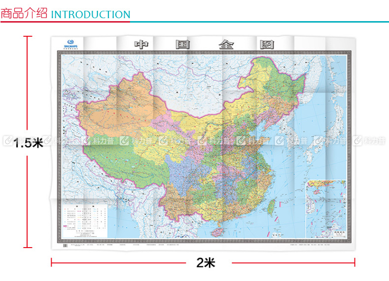 商品名称:国产 中华人民共和国地图 2.1*1.5m (高清彩印)