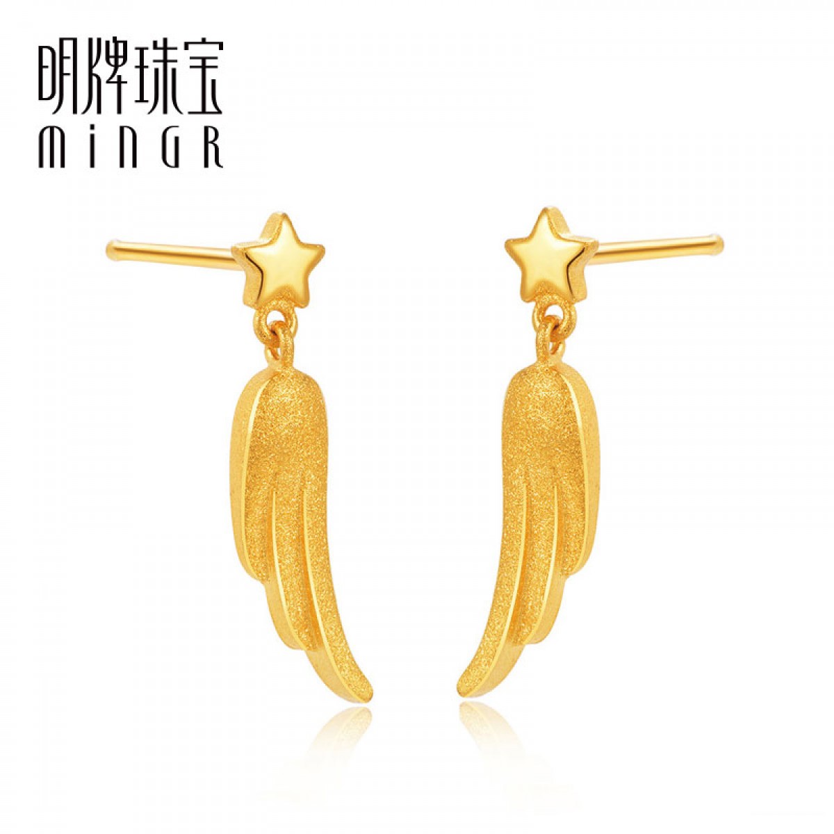 明牌珠宝 黄金耳钉 足金2.41g耳钉天使之翼翅膀星星AFH0104