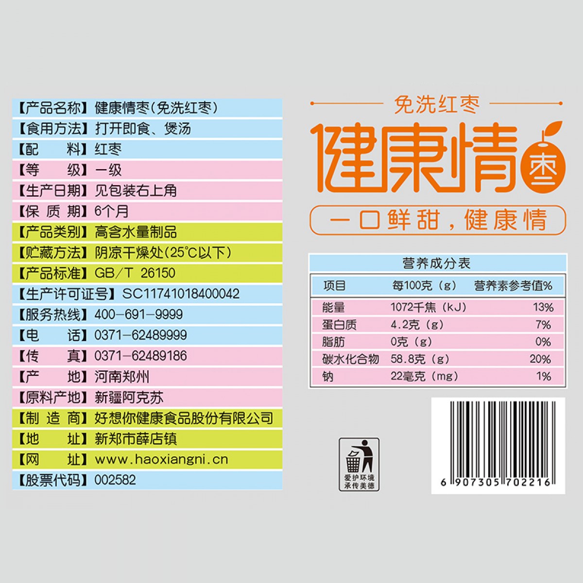 商品名称:好想你 红枣健康情一级1000g大枣 新疆特产零食阿克苏红枣灰枣免洗