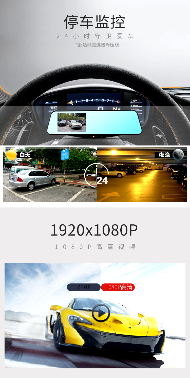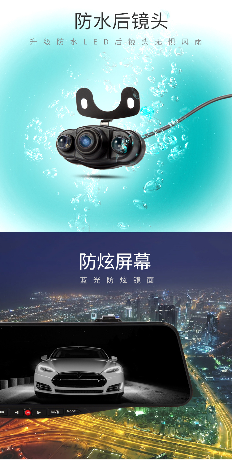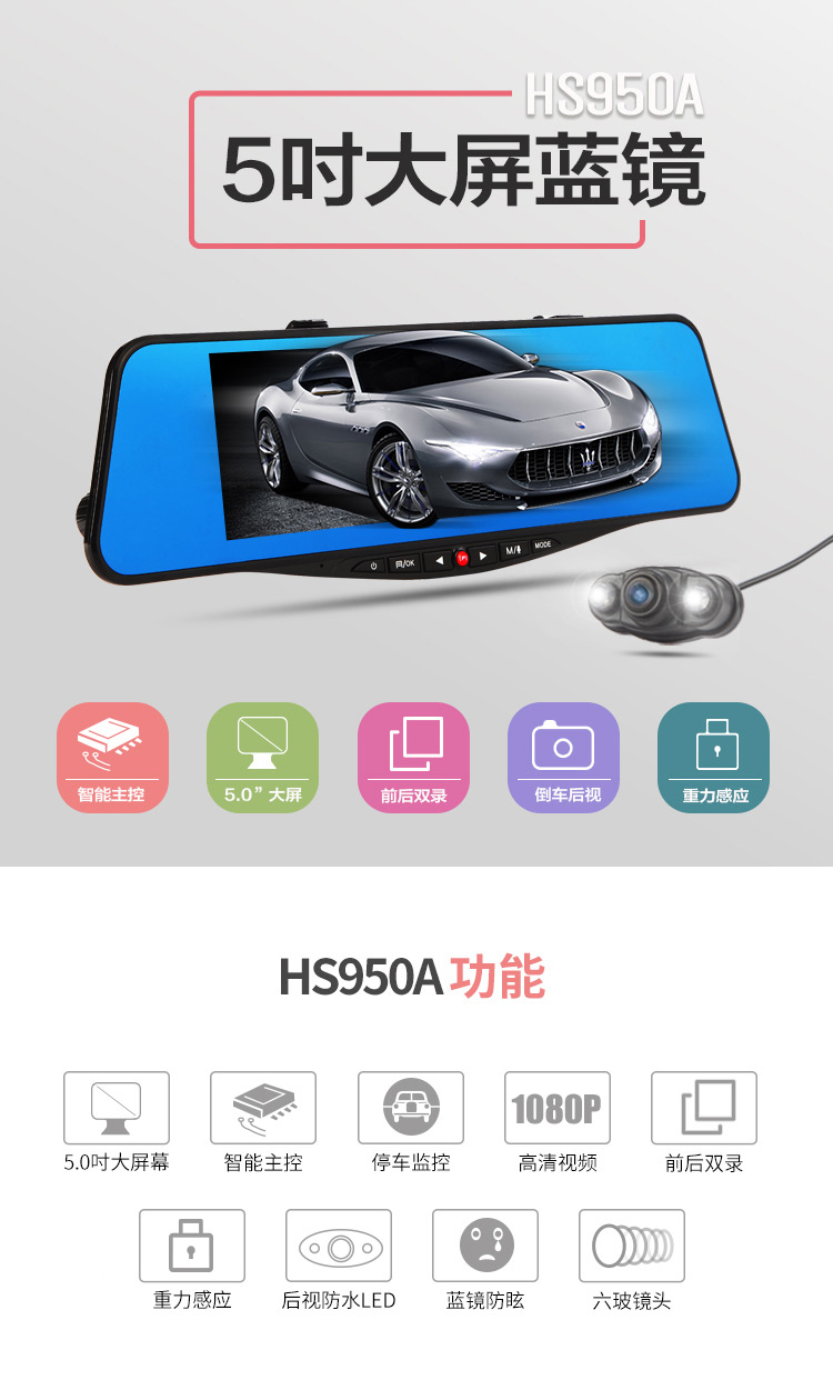 商品名称:凌度 (BLACKVIEW) HS950A 高清行车记录仪 双镜头后视镜 汽车用品 黑色