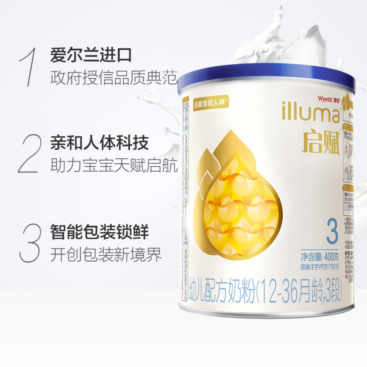 商品名称:惠氏启赋 3段奶粉400g新包装升级配方