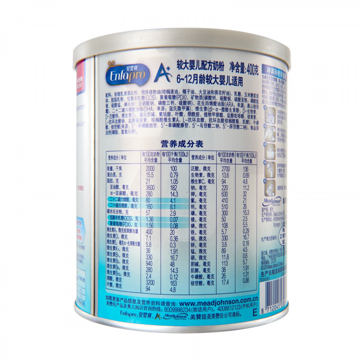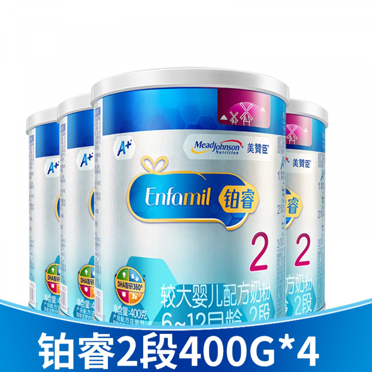 商品名称:美赞臣 荷兰版铂睿2段400g*4罐 婴儿配方奶粉比850g克实惠
