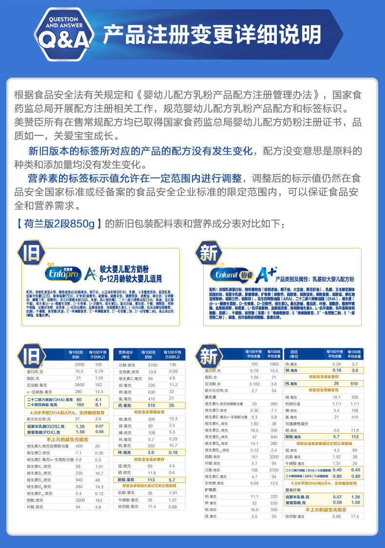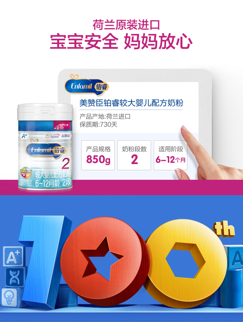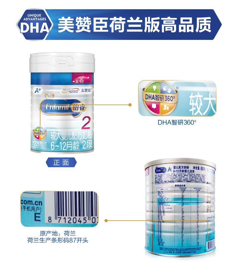 商品名称:美赞臣 荷兰版铂睿2段850gx2罐较大婴儿配方奶粉礼盒装