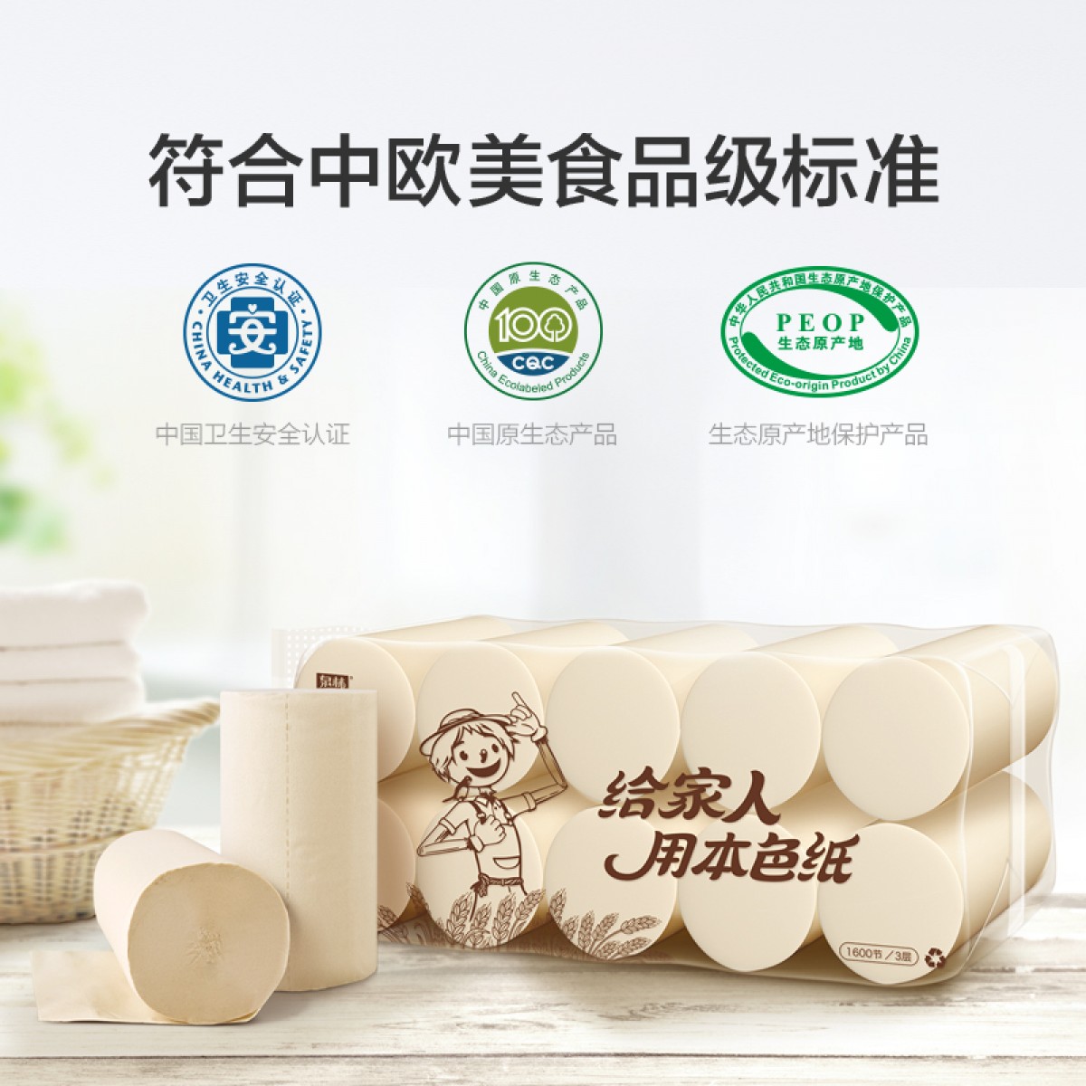 商品名称:泉林本色 纸品卷纸健康本色环保实芯卫生纸160节*10卷