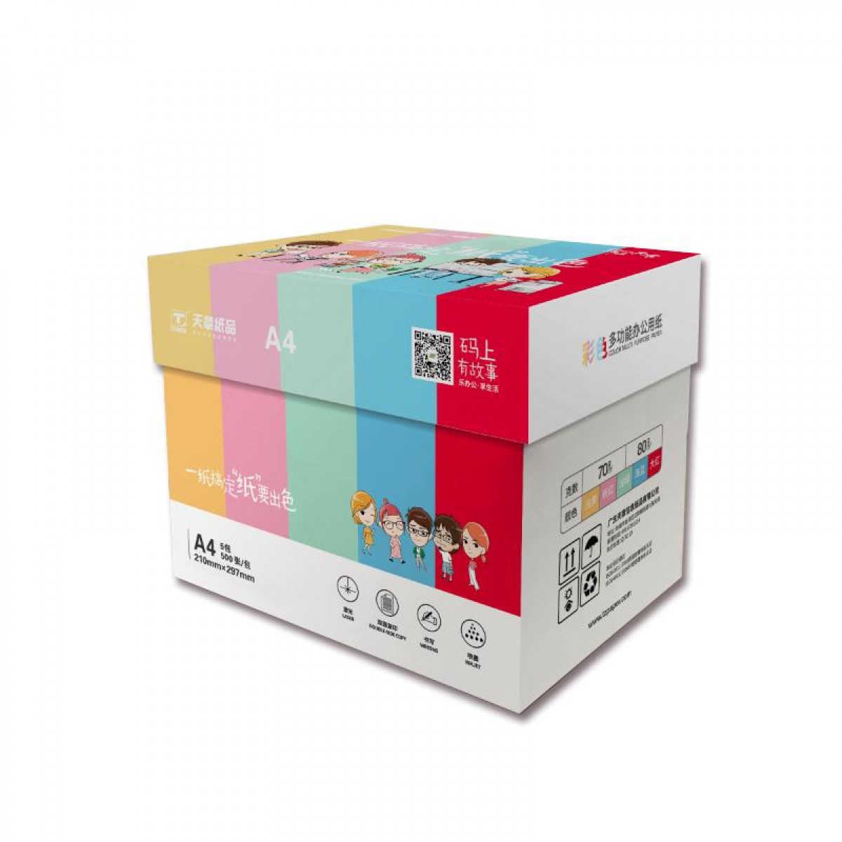 商品名称:天章 彩色纸A4 80克学生彩色纸手工纸彩色折纸粉红 浅黄 浅绿 浅蓝 大红80克500张/包彩色打印复印纸