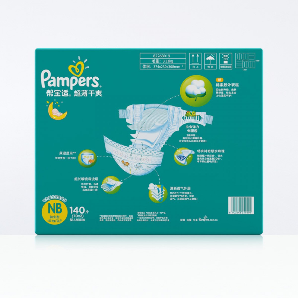 商品名称:帮宝适 绿帮纸尿裤NB140片超薄透气男女通用婴儿尿片尿不湿