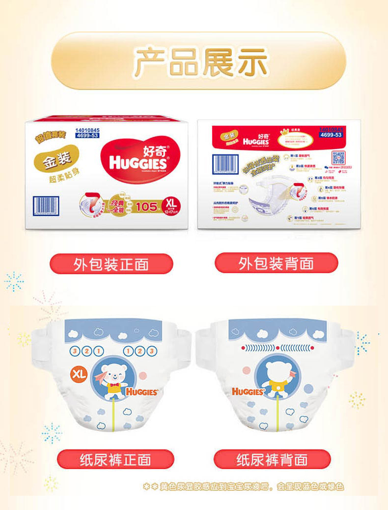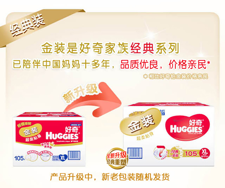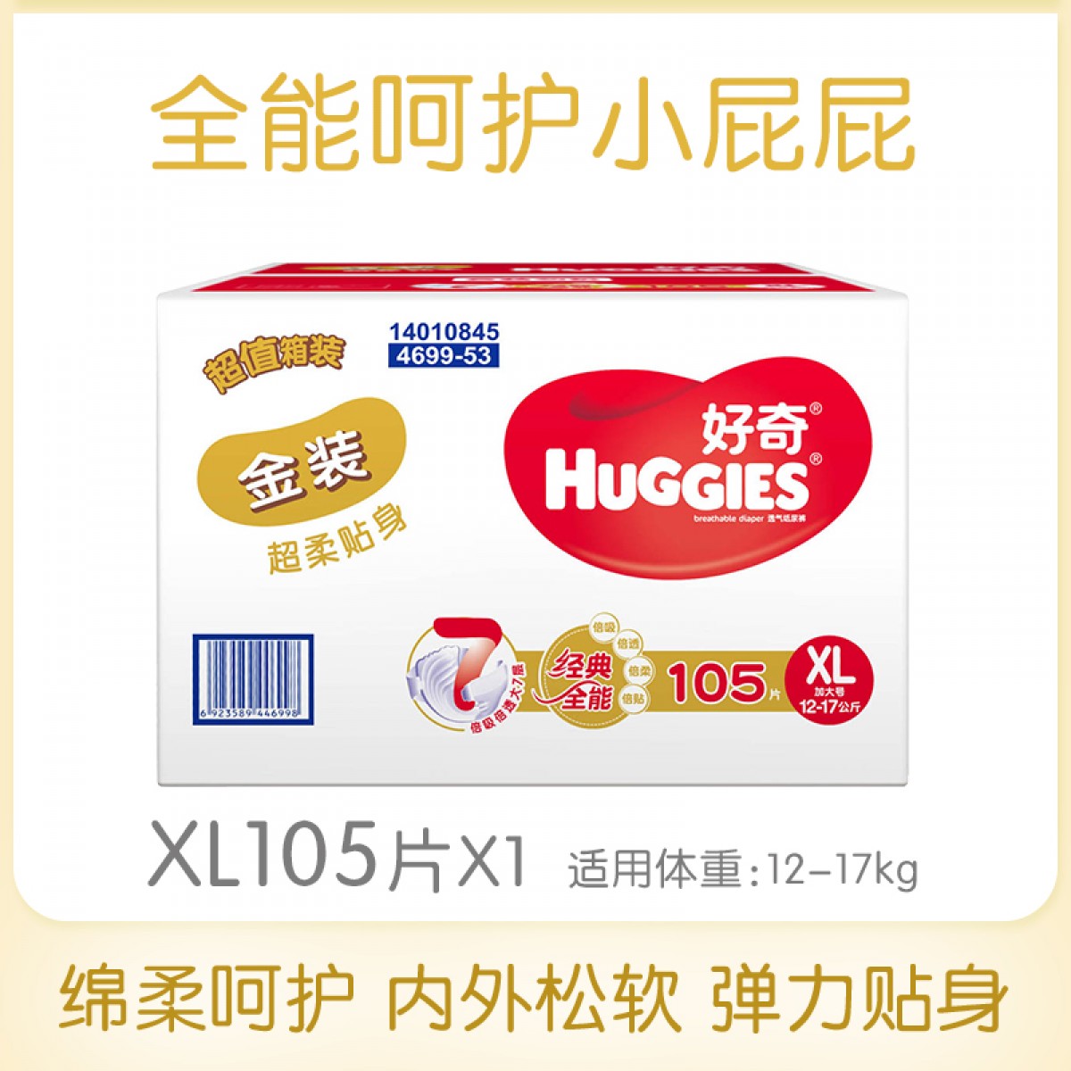 商品名称:好奇 金装纸尿裤XL105 倍柔贴身婴儿尿不湿男女宝宝
