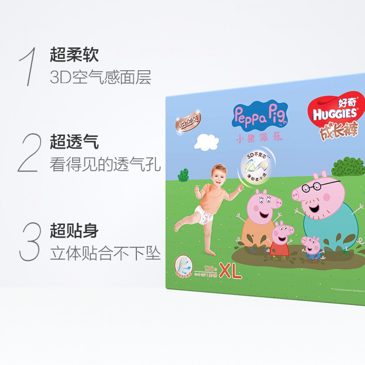 商品名称:好奇 铂金装超薄透气成长裤XL136片男女通用婴儿尿不湿非纸尿裤