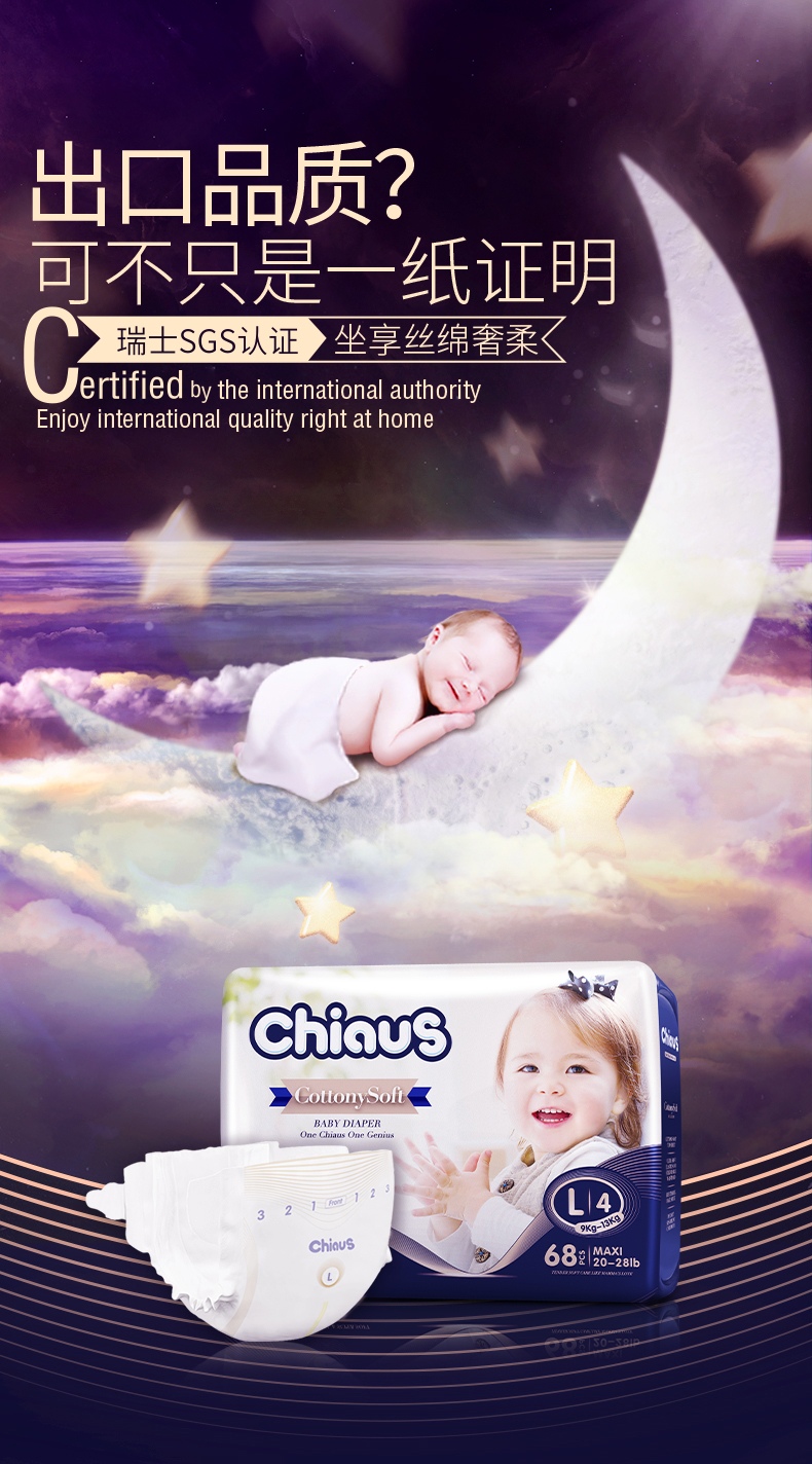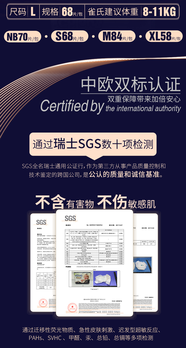 商品名称:雀氏 出口装柔润金棉纸尿裤L68片男女婴儿超薄透气尿不湿