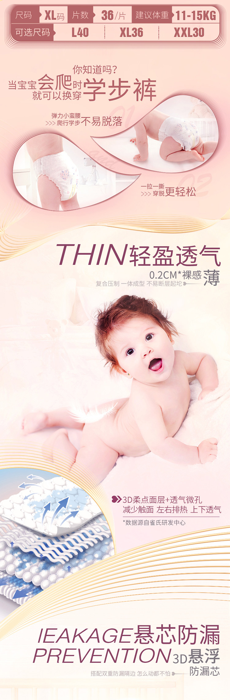 雀氏 芯守护婴儿拉拉裤学步裤XL36片