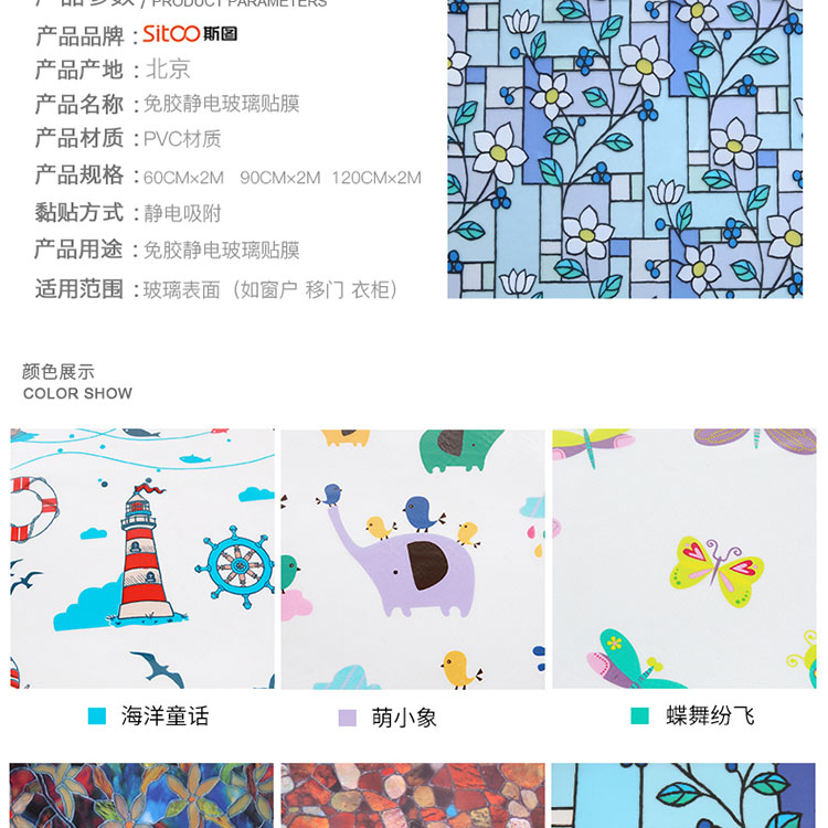 商品名称:国产 卡通磨砂玻璃贴膜贴纸透光不透明儿童房浴室卫生间窗户玻璃膜窗贴静电贴加厚款 120cm*2m ST9611D