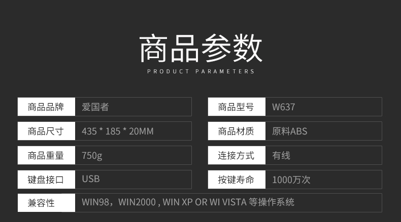 商品名称:爱国者 电脑键盘有线键盘USB接口台式笔记本办公家用游戏 W637