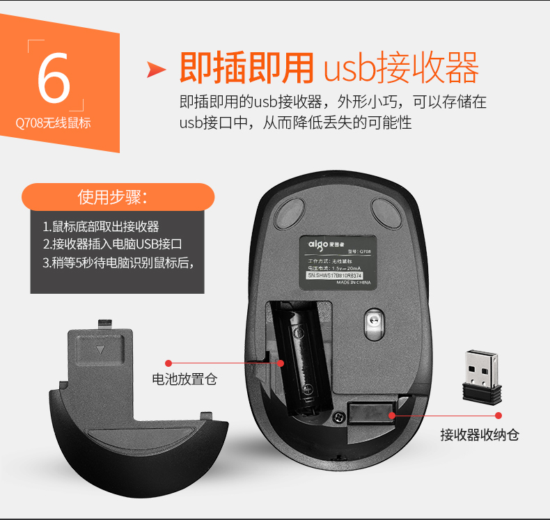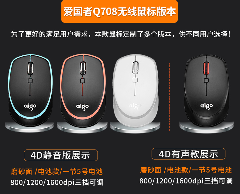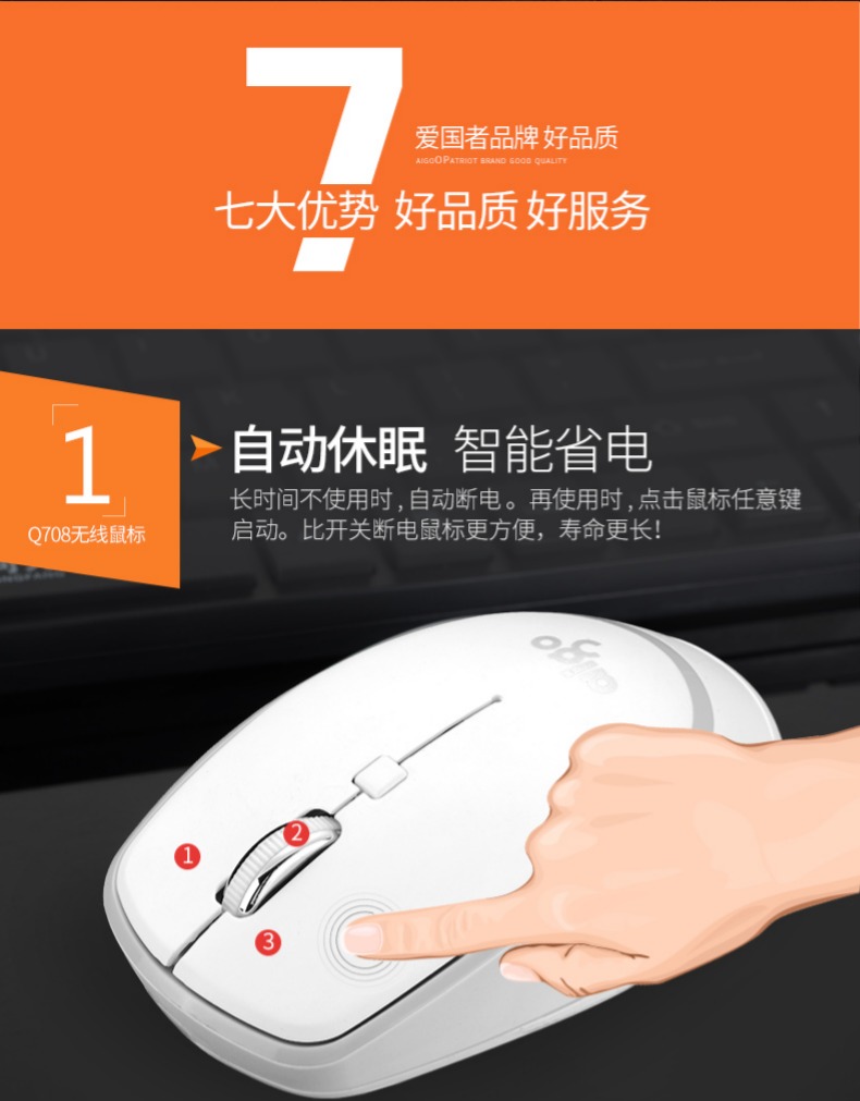 商品名称:爱国者 无线鼠标台式笔记本电脑男女生游戏办公家用静音无限鼠标 Q708