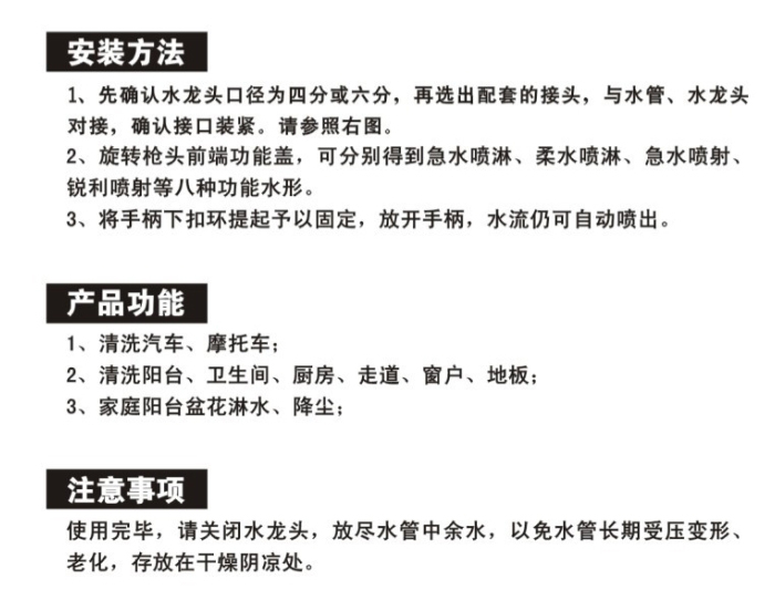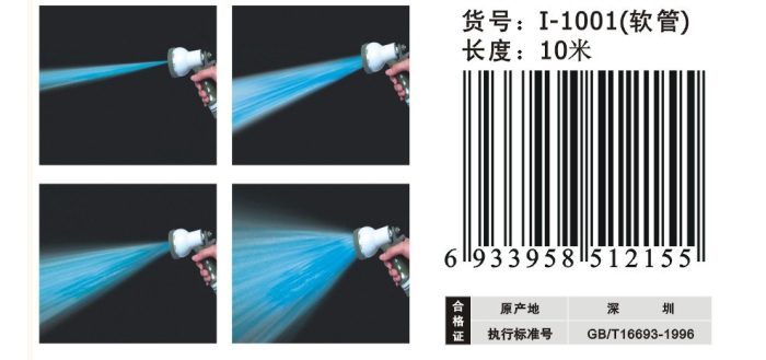 商品名称:爱车屋 I-1001 多功能节水喷枪10m 10M 绿色 (个)