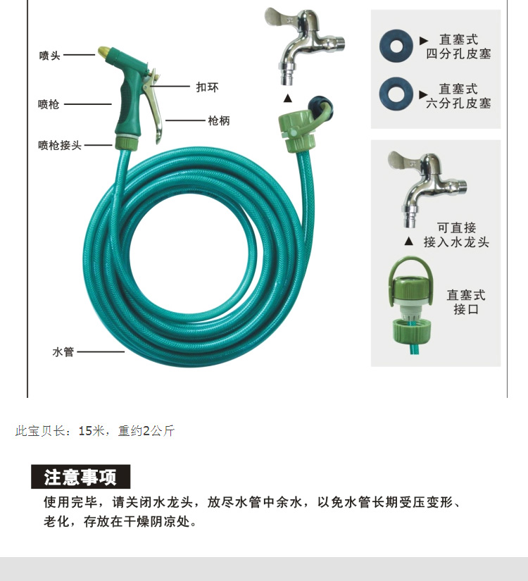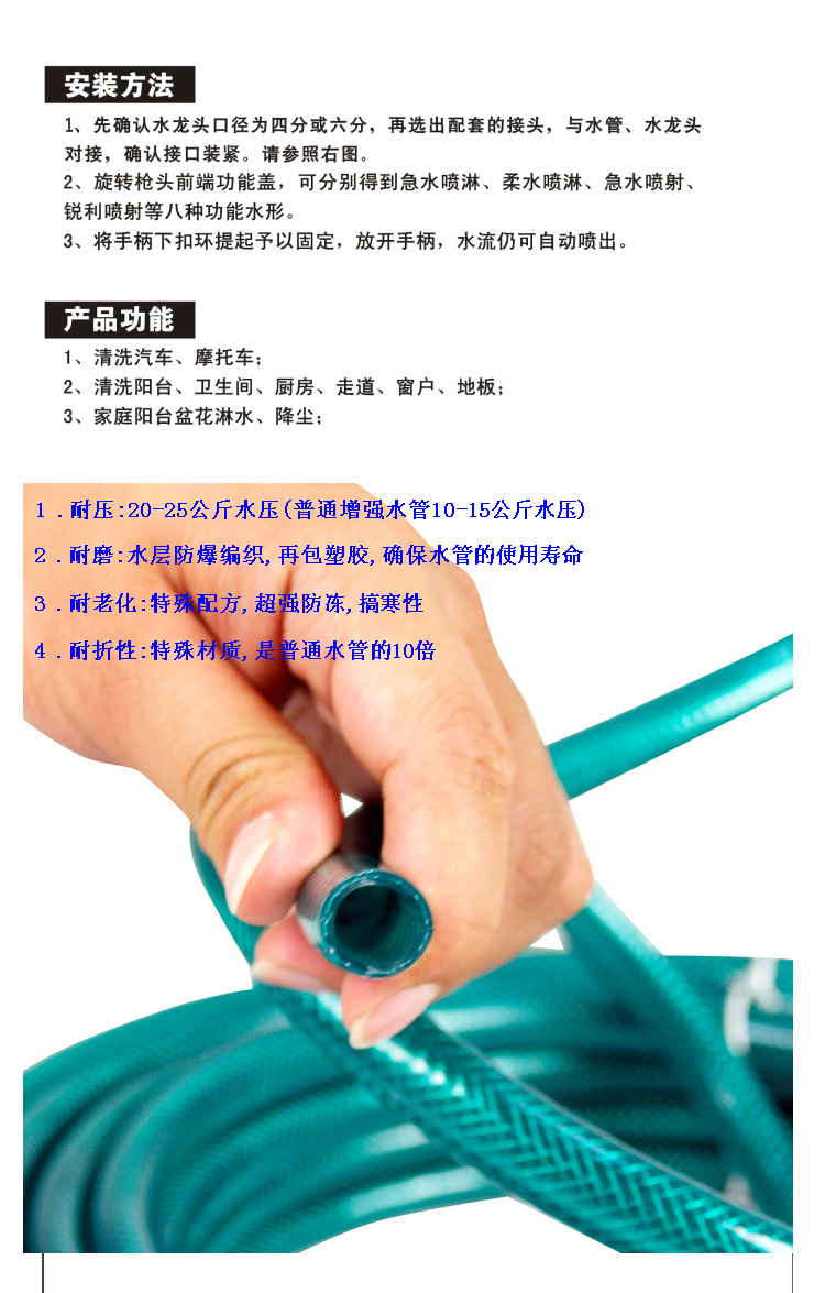 商品名称:爱车屋 I-1006 多功能节水喷枪15米 15M 绿色 (个)