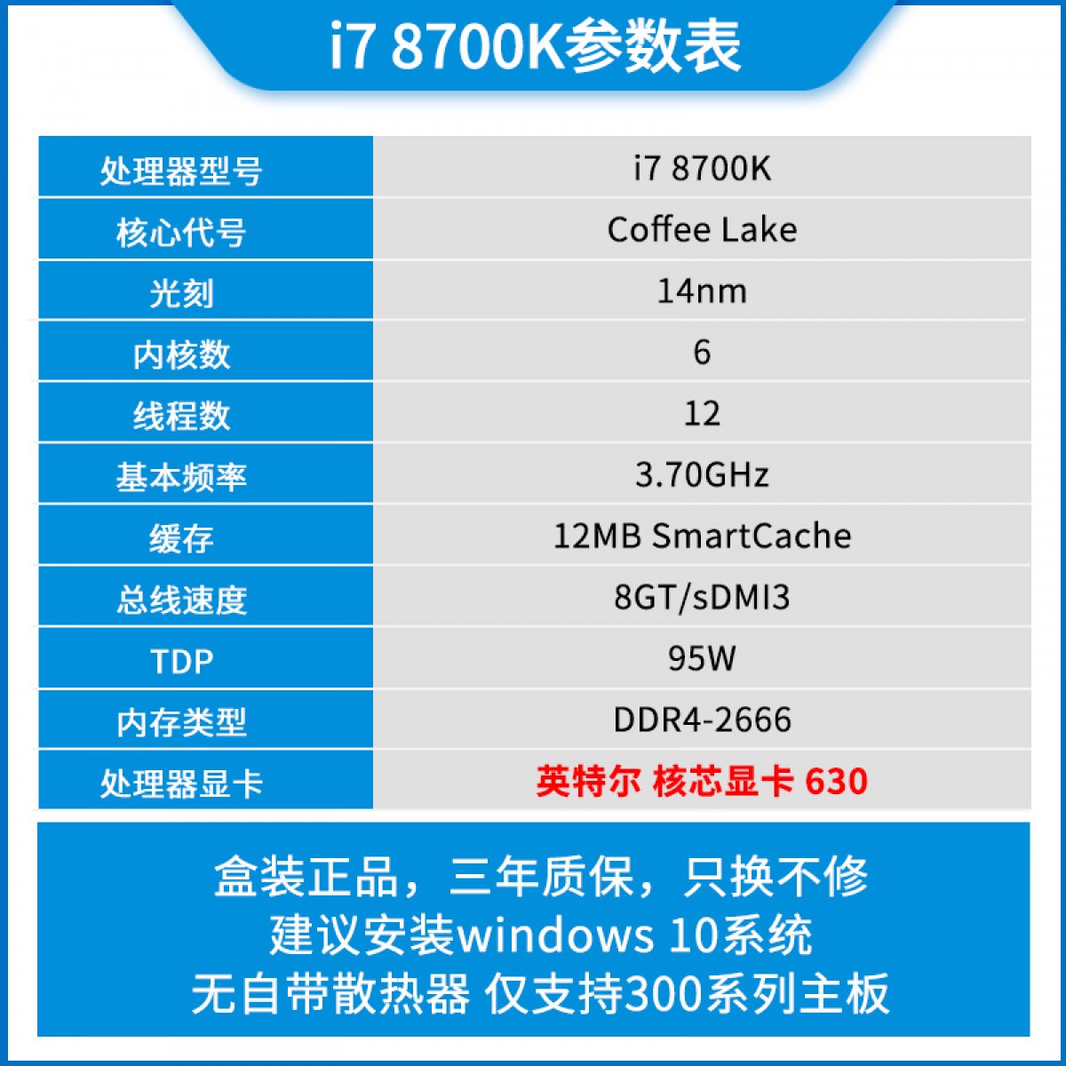 商品名称:Intel/英特尔 酷睿i7 8700k盒装 处理器i7 9700K/KF 8700 电脑CPU