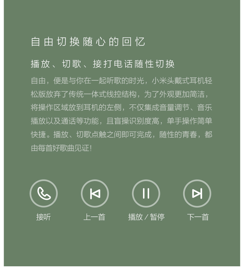 商品名称:小米 头戴式耳机 轻松版 女生跑步运动音乐耳麦