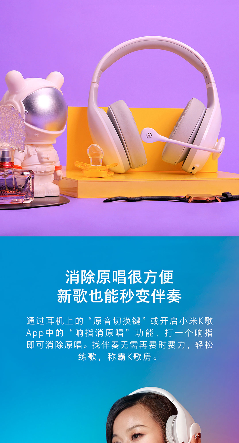 商品名称:小米 蓝牙耳机K歌版头戴式无线音乐游戏手机电脑耳麦