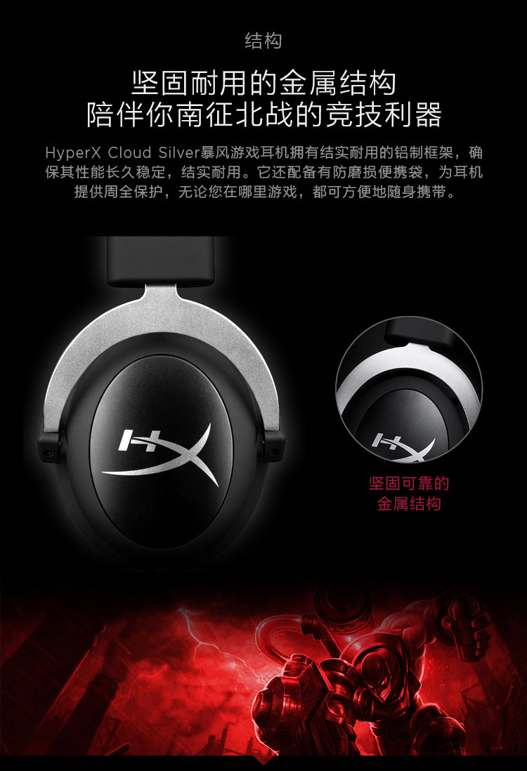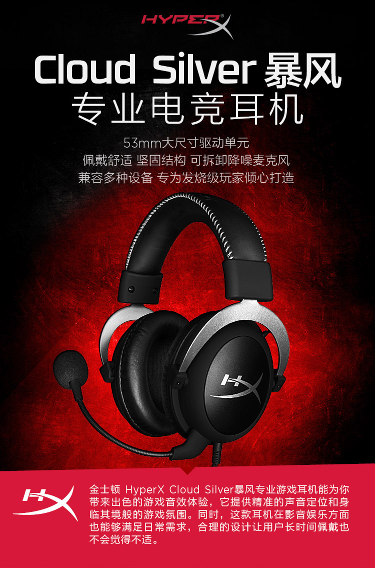 商品名称:金士顿 暴风吃鸡电竞游戏耳机 HYPERX Cloud Silver
