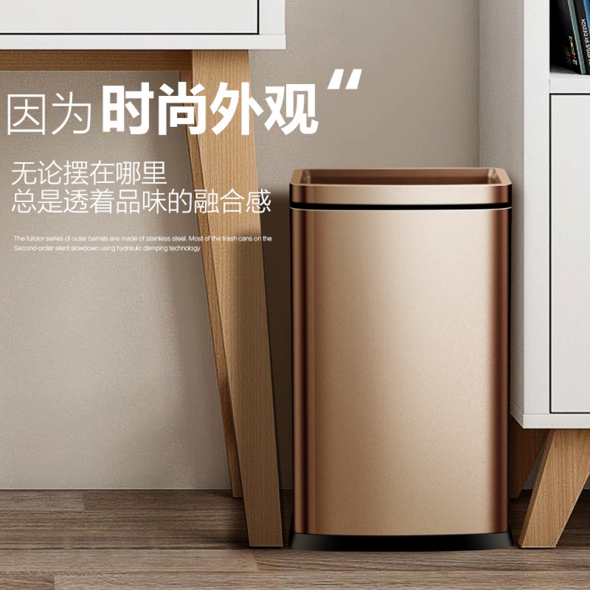 商品名称:国产 厨房 卫生 间厕所长不锈钢方形垃圾桶家用无盖大号客厅简约现代创意8828