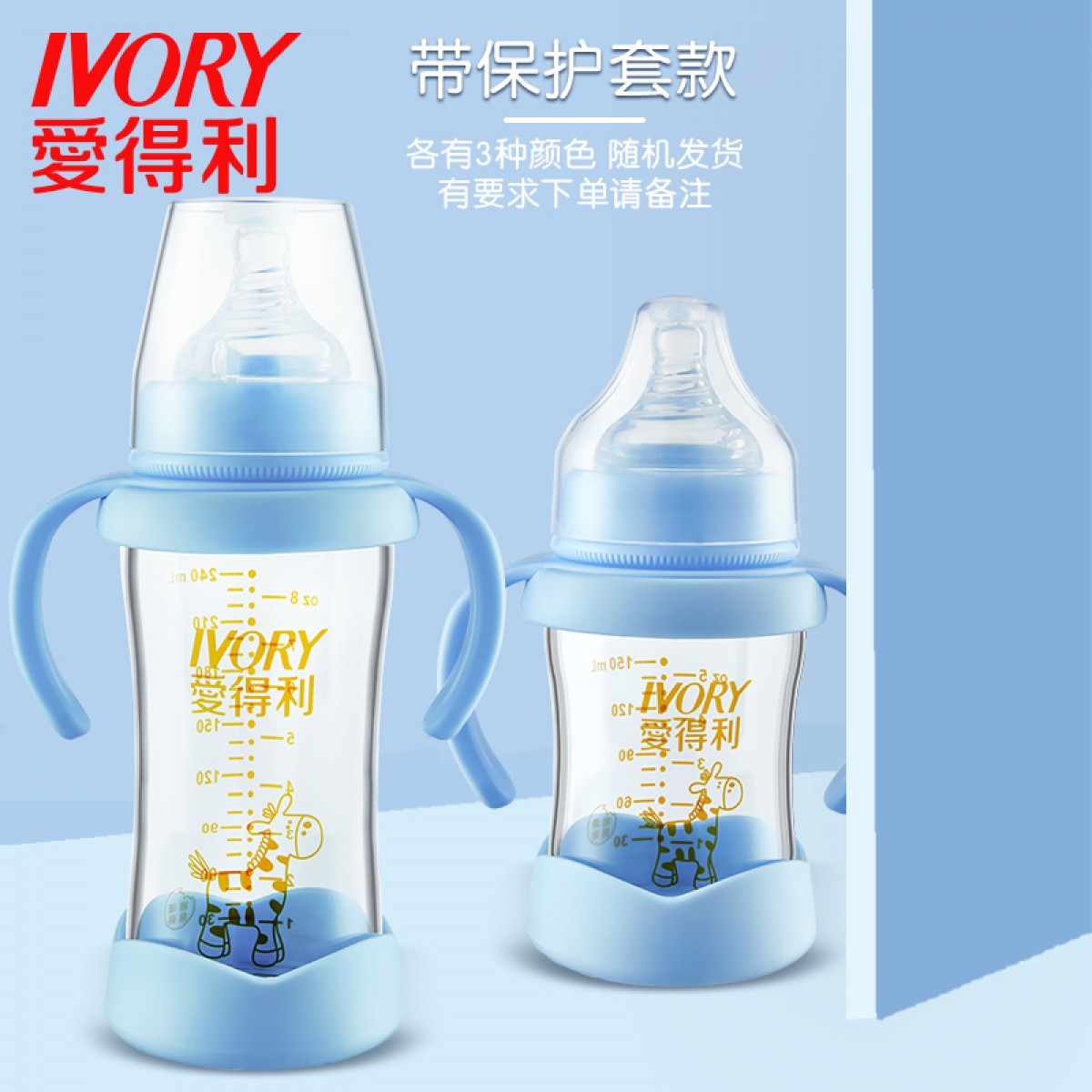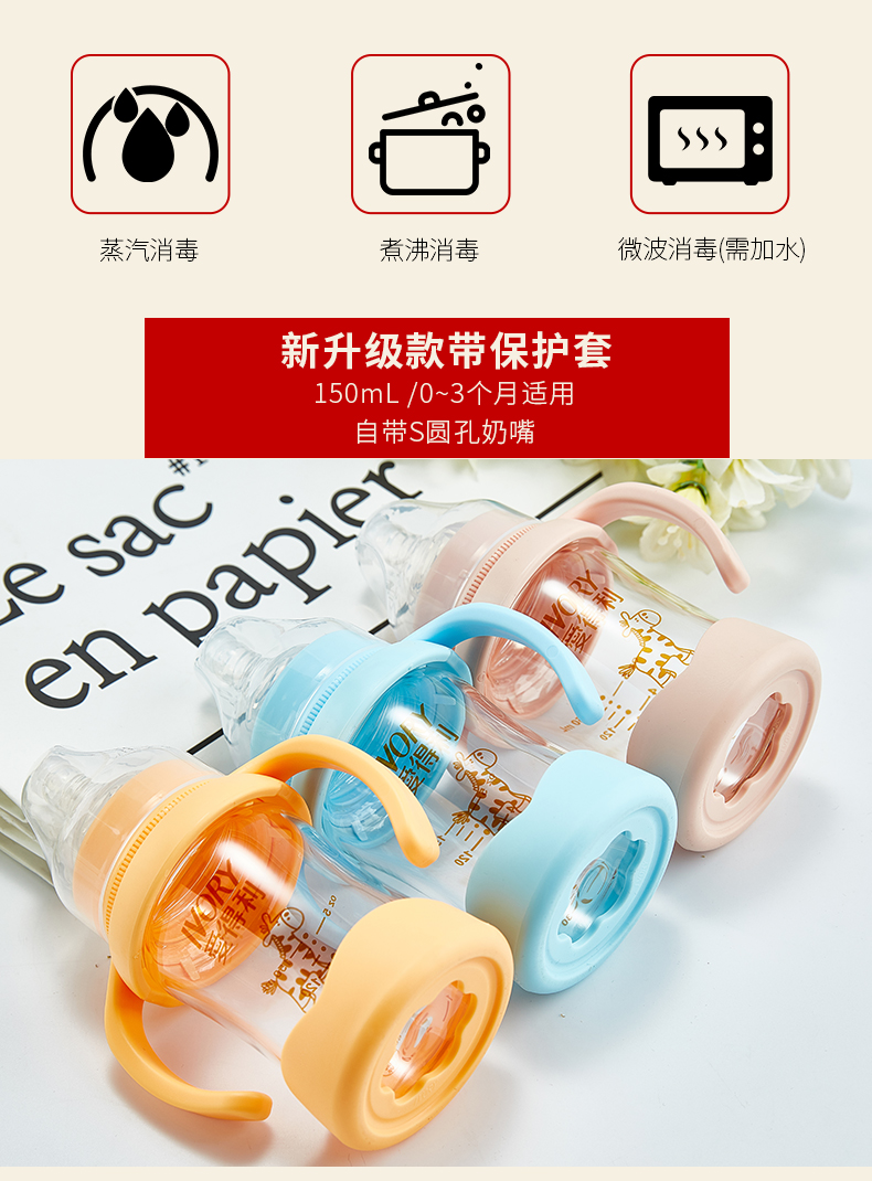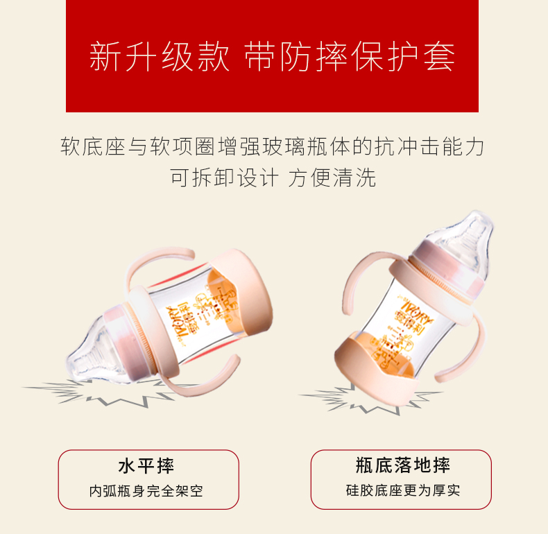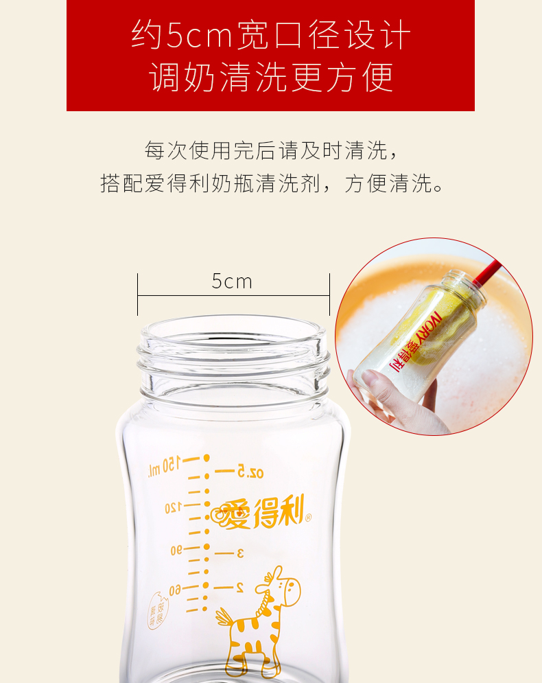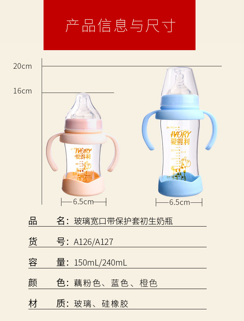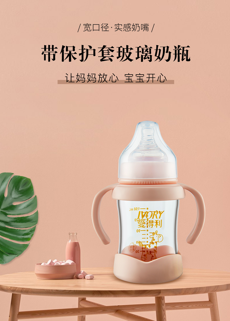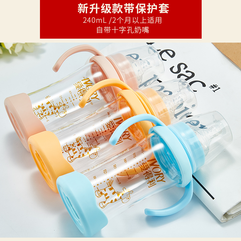 商品名称:爱得利 玻璃奶瓶宽口径新生婴儿宝宝奶瓶带保护套防摔150/240mL