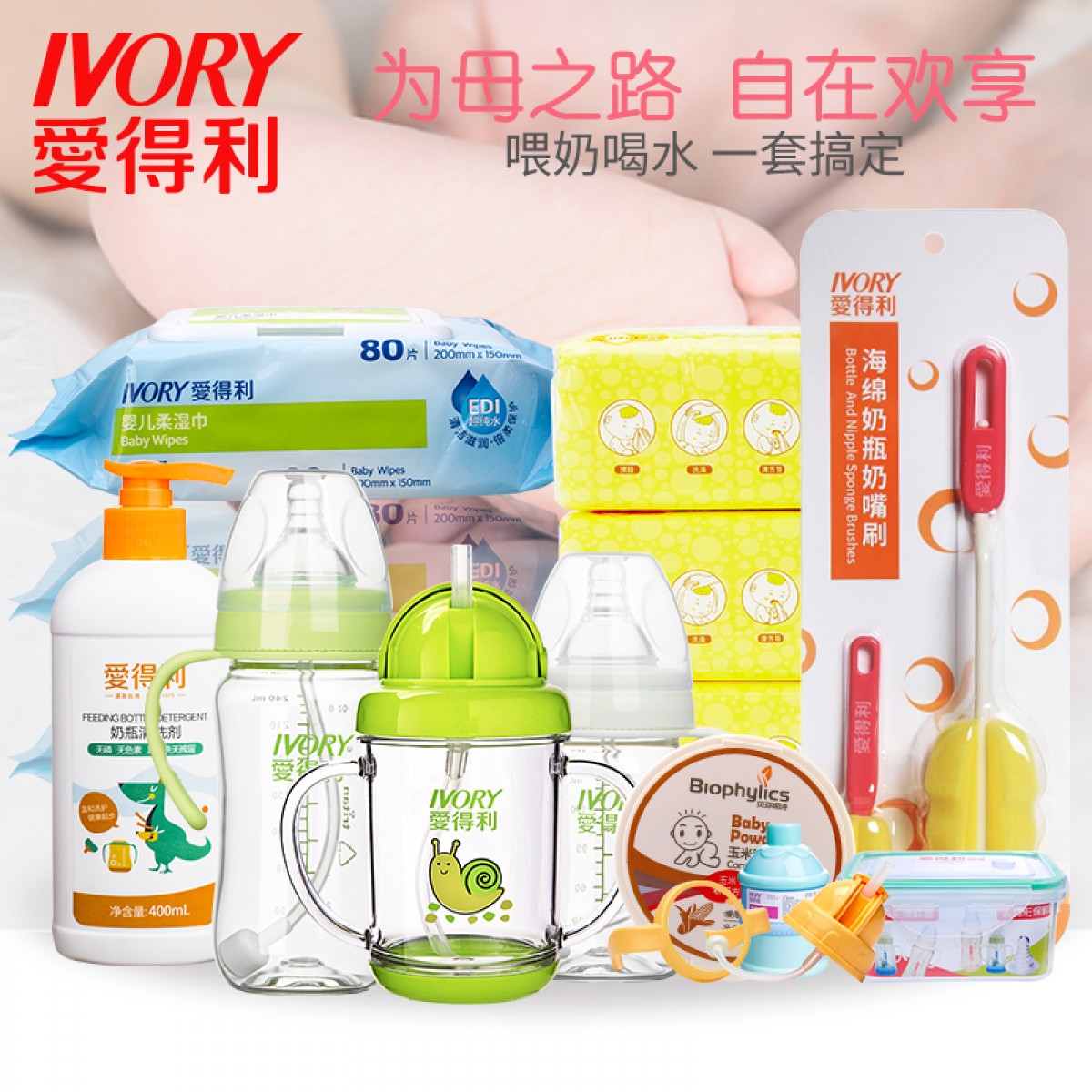 爱得利 Tritan奶瓶水杯组合湿巾干湿两用棉柔巾宝宝用品组合套装