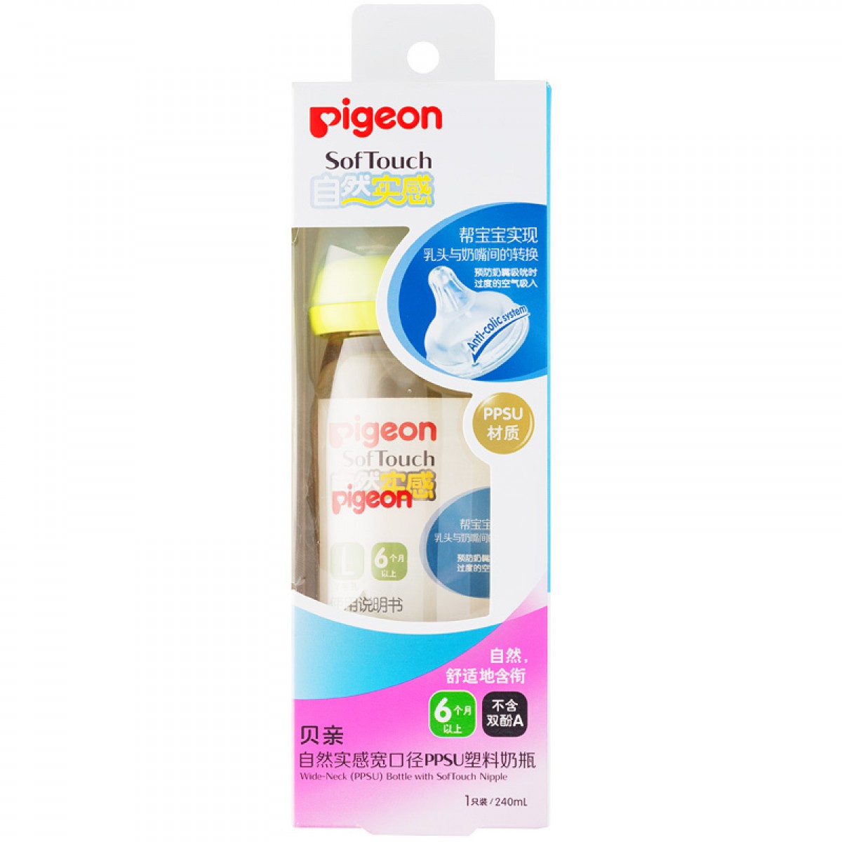 商品名称:贝亲 自然实感宽口径PPSU婴儿奶瓶240ml 配L号奶嘴