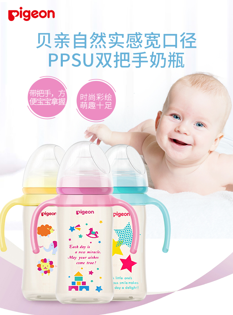 商品名称:贝亲 宽口径PPSU双手柄婴儿奶瓶240ml 配M号奶嘴
