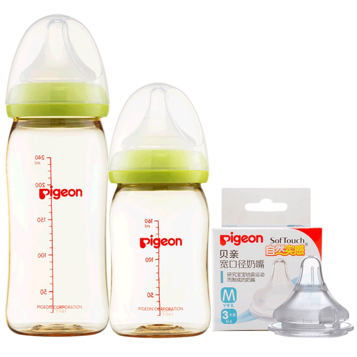 贝亲 婴儿宽口径PPSU奶瓶 柔软硅胶M号奶嘴套装
