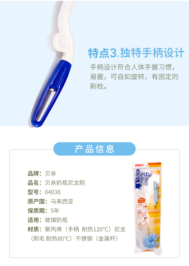 商品名称:贝亲 进口奶瓶尼龙刷轻松除奶垢04038