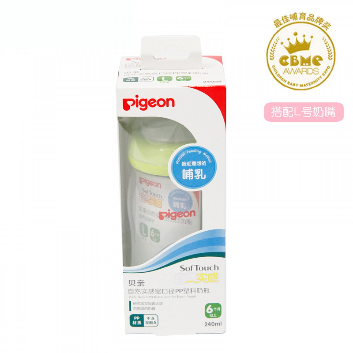 贝亲 贝亲奶瓶自然实感塑料宽口径240ml配L奶嘴AA95
