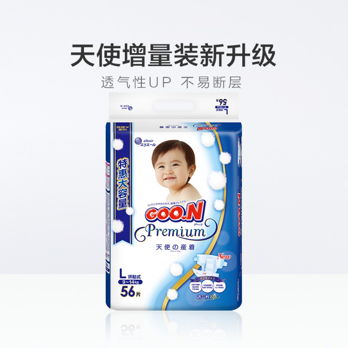 商品名称:大王 天使增量装环贴式纸尿裤L56片特惠装 男女通用婴儿尿不湿