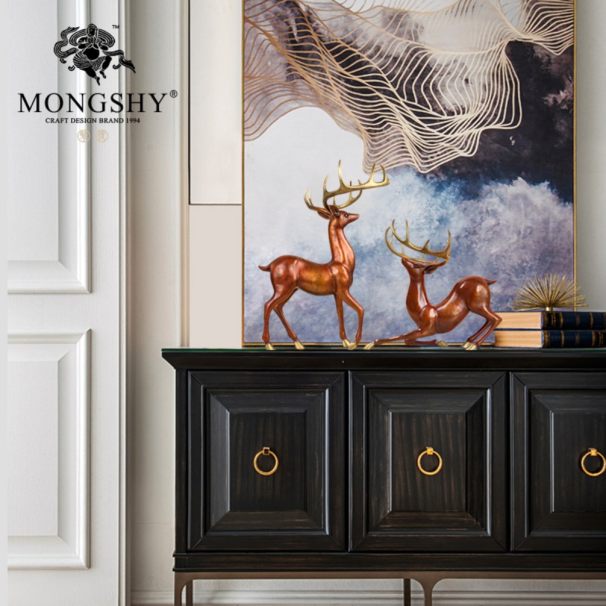 商品名称:国产 纯铜鹿一对新中式家居装饰摆件工艺品客厅玄关风水招财开业礼品