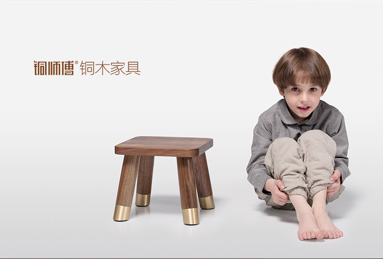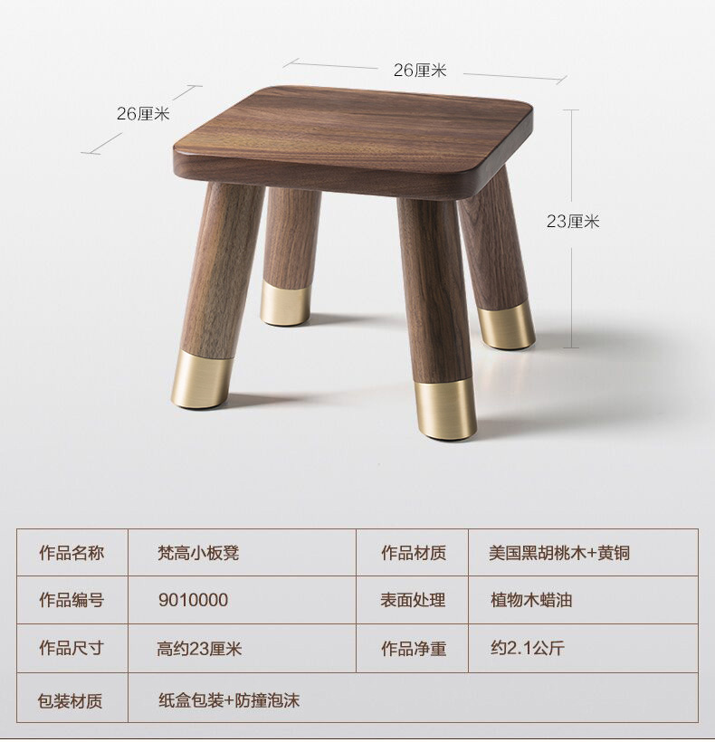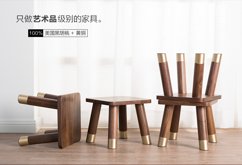 商品名称:国产 铜师傅 铜木家具 梵高小板凳 美国黑胡桃 黄铜 木蜡油 创意摆件