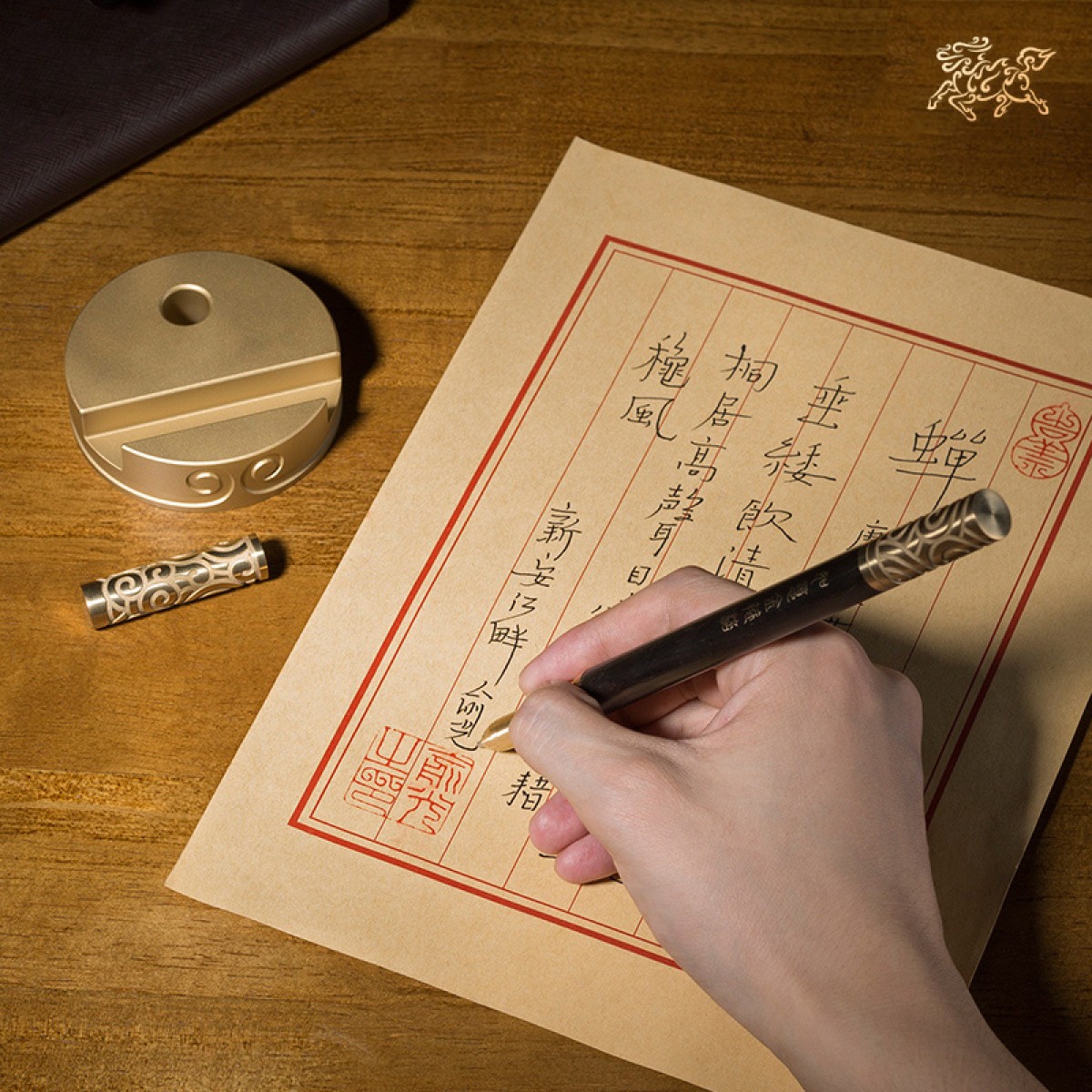 铜师傅《铜木主义之如意金箍棒》签字笔 双色笔 笔架 镇纸 手机架