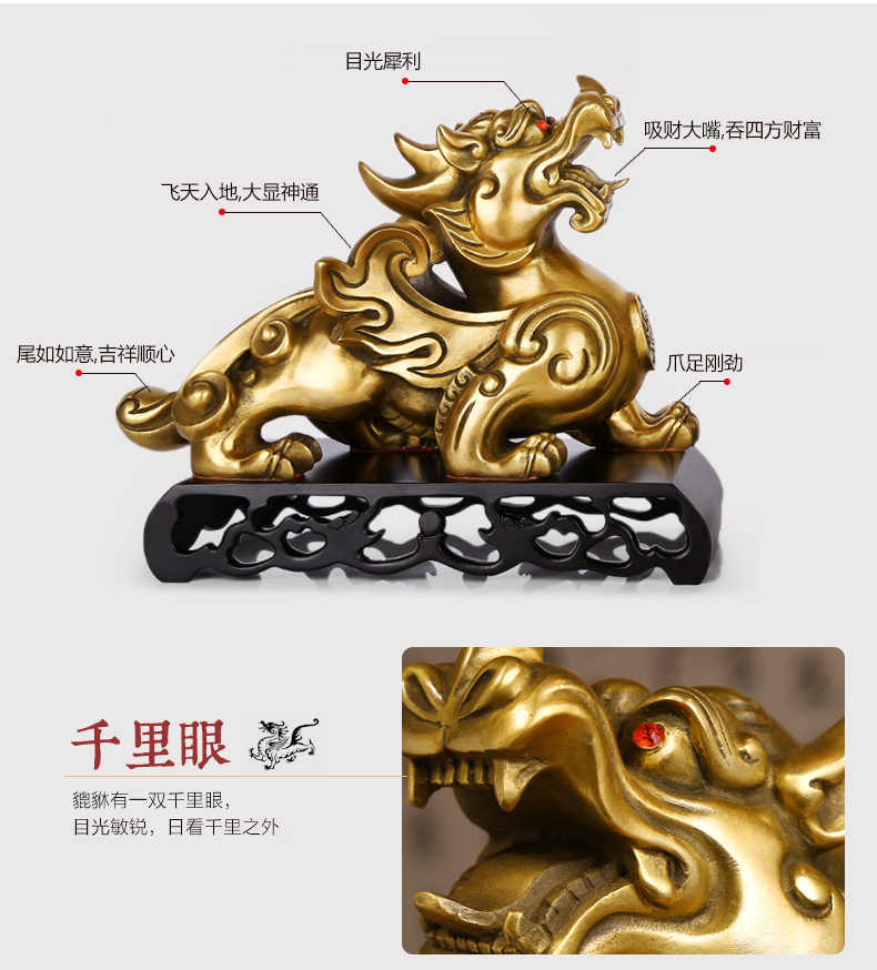 商品名称:国产 全纯铜貔貅摆件招财风水家居装饰品乔迁开业过春节新年终奖送礼物
