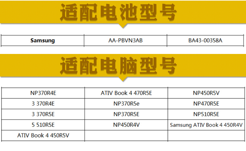 商品名称:三星/Samsung 笔记本电池 AA-PBVN3AB NP370R4E 470R5E 450R5V 510R5E 450R4V 370R4E 370R5E NP450R5V NP470R5E