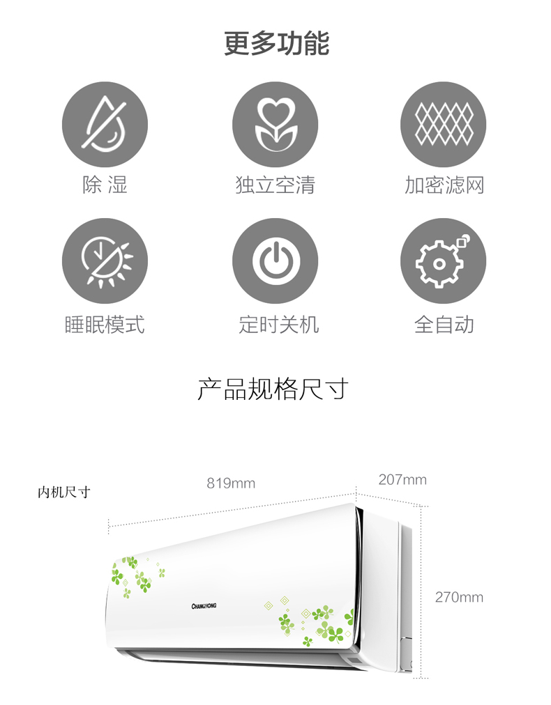 - 商品名称:长虹 大1.5匹定速单冷挂式空调 KF-35GW/HG3+2