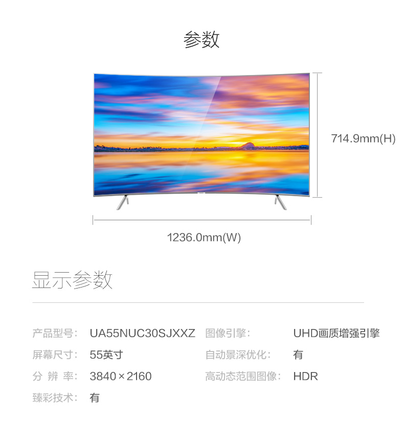 商品名称:三星/Samsung 55英寸4K超高清曲面UHD智能电视机 UA55NUC30SJXXZ