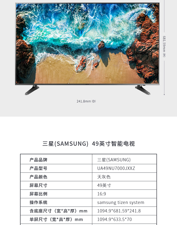 商品名称:三星/Samsung 49英寸4k超高清智能电视 UA49NU7000JXXZ