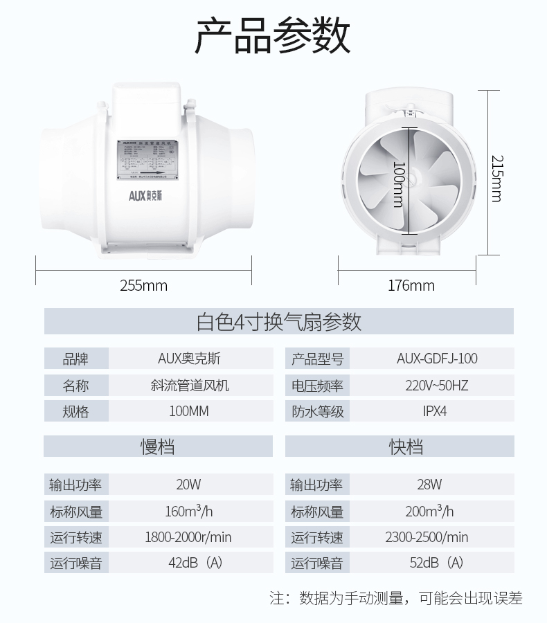 商品名称:奥克斯 管道风机排气扇4寸 AUX-GDFJ-100