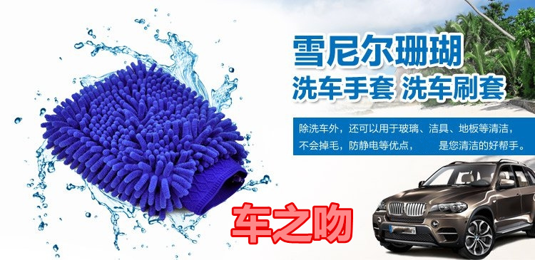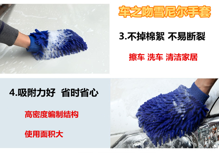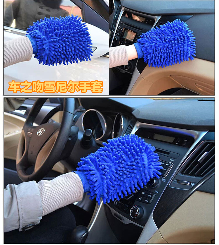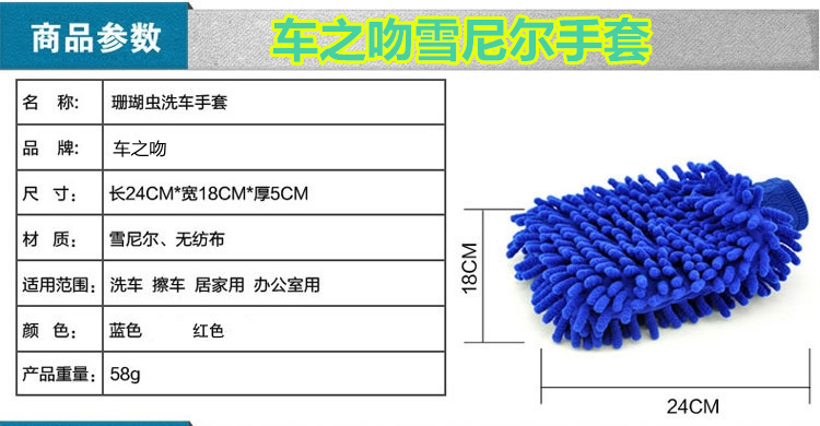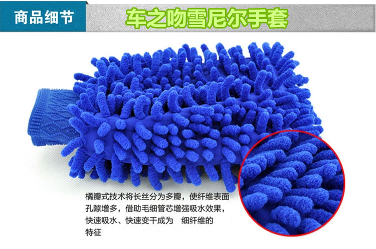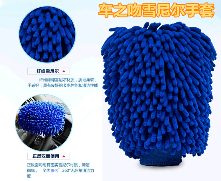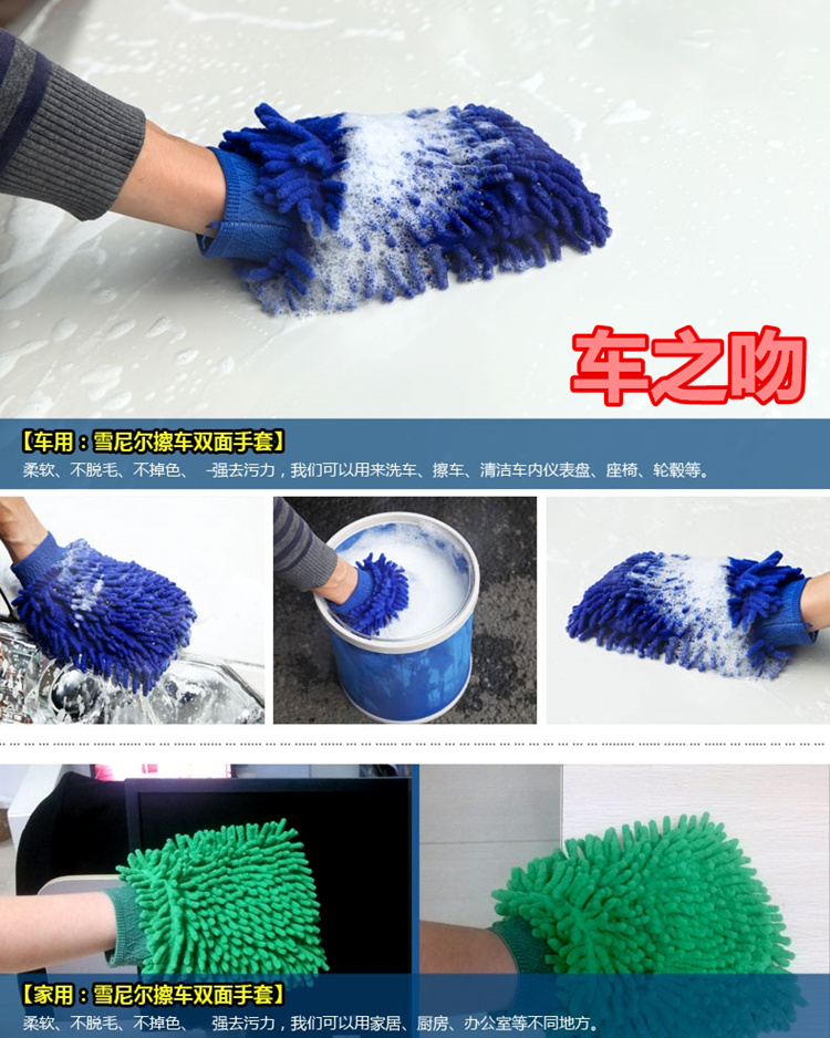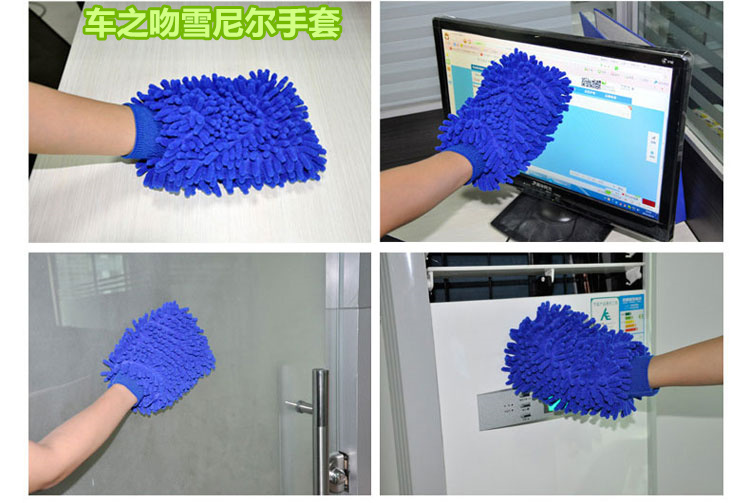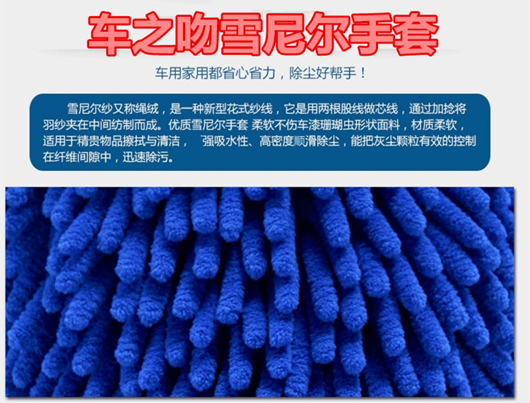 商品名称:国产 多用途手套 雪尼尔珊瑚擦车洗车手套 蓝色*2条