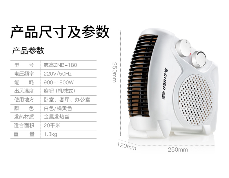 商品名称:志高/Chigo 取暖器家用浴室电暖气节能 ZNB-180