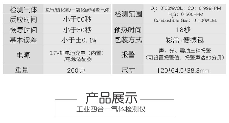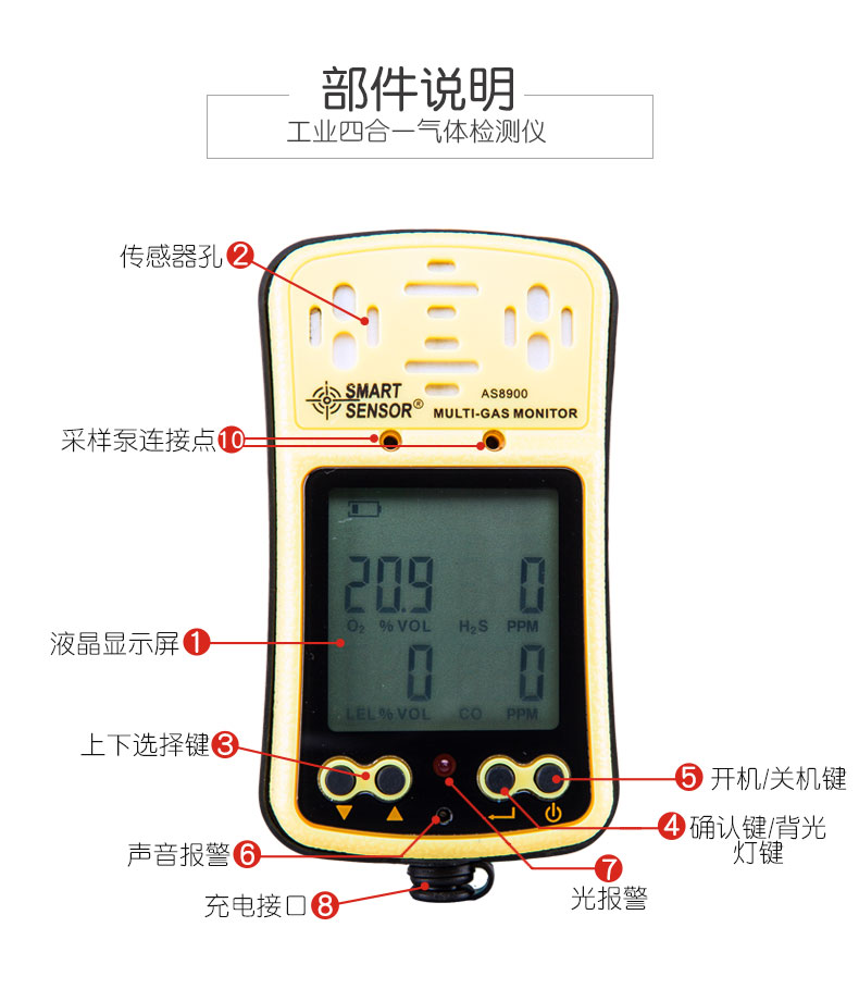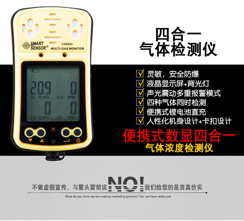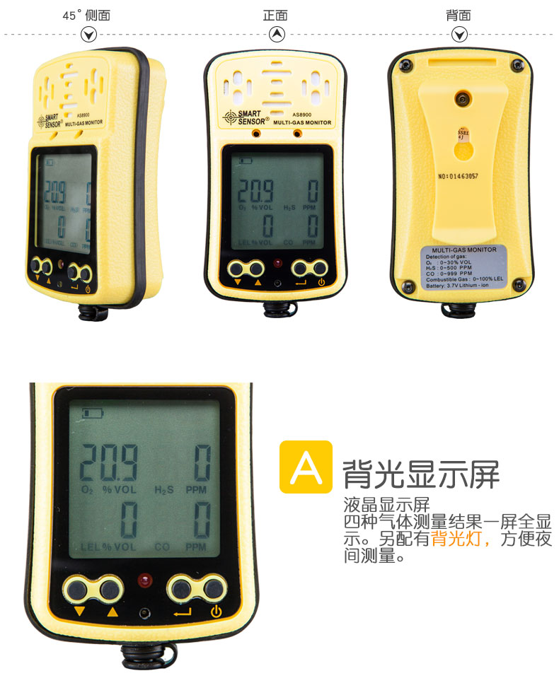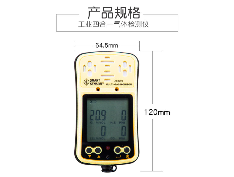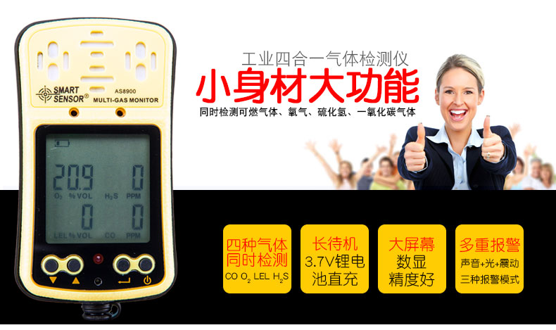 商品名称:国产 多功能四合一气体检测仪氧气一氧化碳硫化氢可燃气体测试仪测量器 AS8900