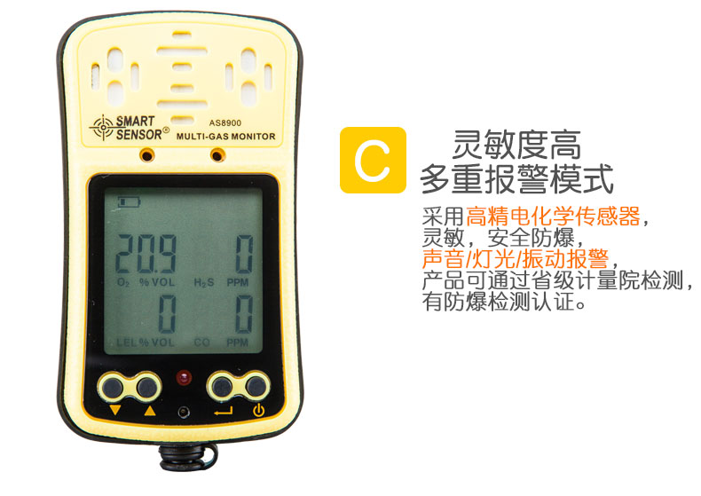 国产 多功能四合一气体检测仪氧气一氧化碳硫化氢可燃气体测试仪测量器 AS8900
