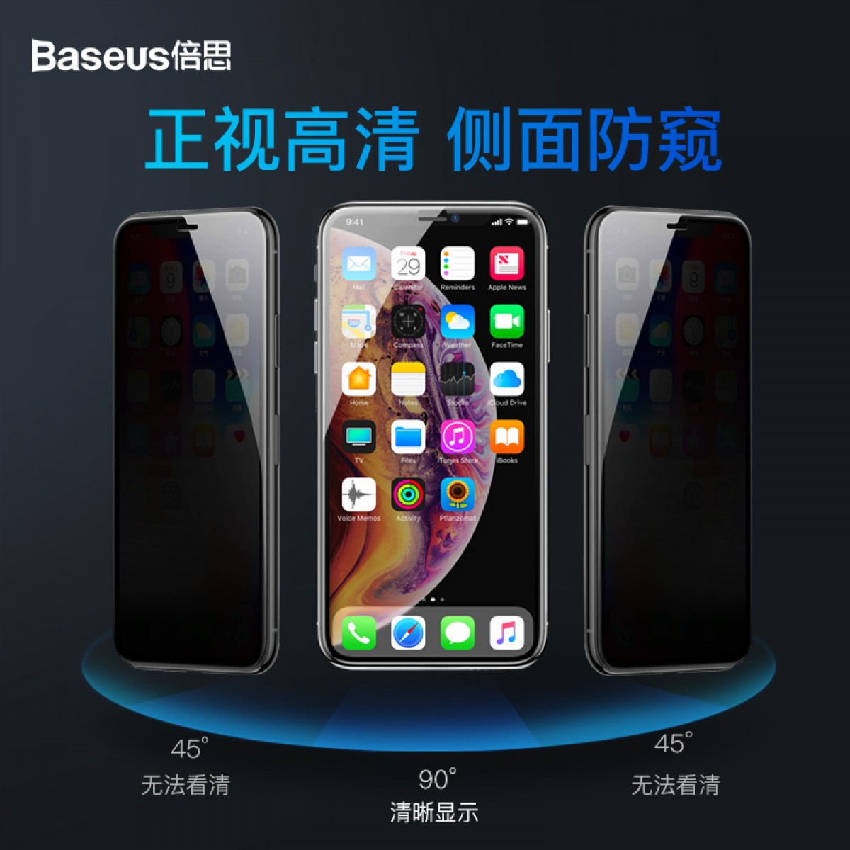 倍思 iphoneX钢化膜Xs防偷窥膜苹果XsMax全屏Max防偷窥iPhoneXsMax防偷看透偷窃膜iphonex苹果X防窥膜xr手机膜