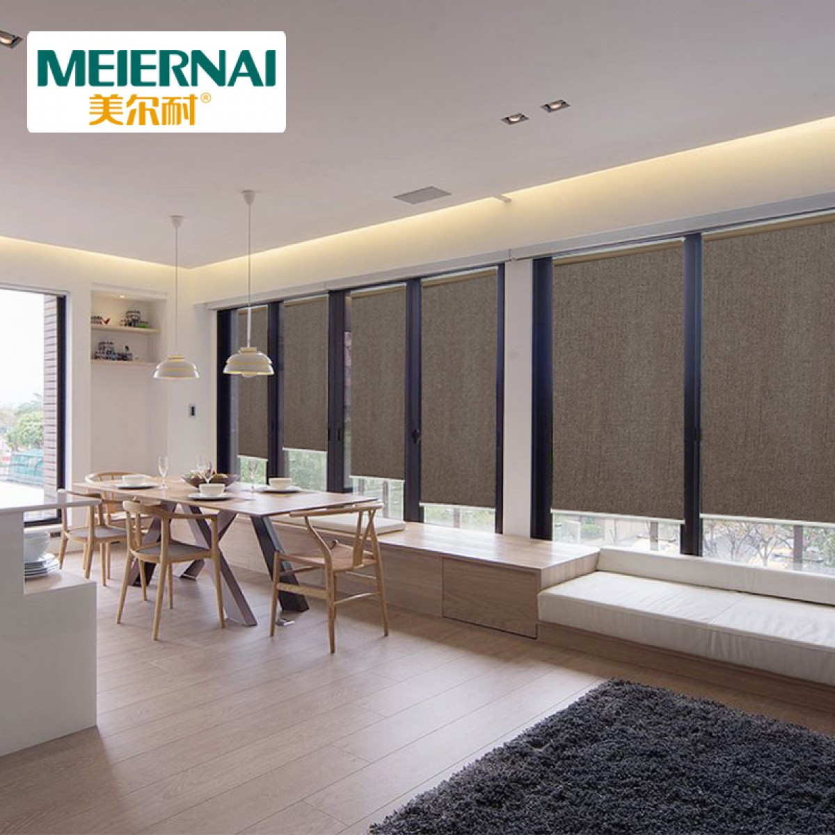 美尔耐 全遮光卷帘窗帘仿亚麻遮阳帘 升降隔热办公室客厅卧室阳台