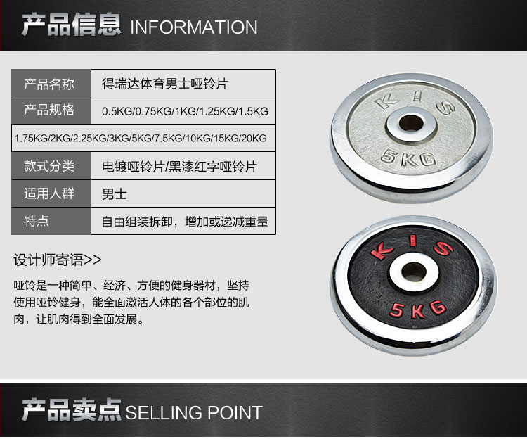 商品名称:国产 哑铃片电镀2.5kg3KG5kg7.5公斤10kg杠铃片通用KIS健身片