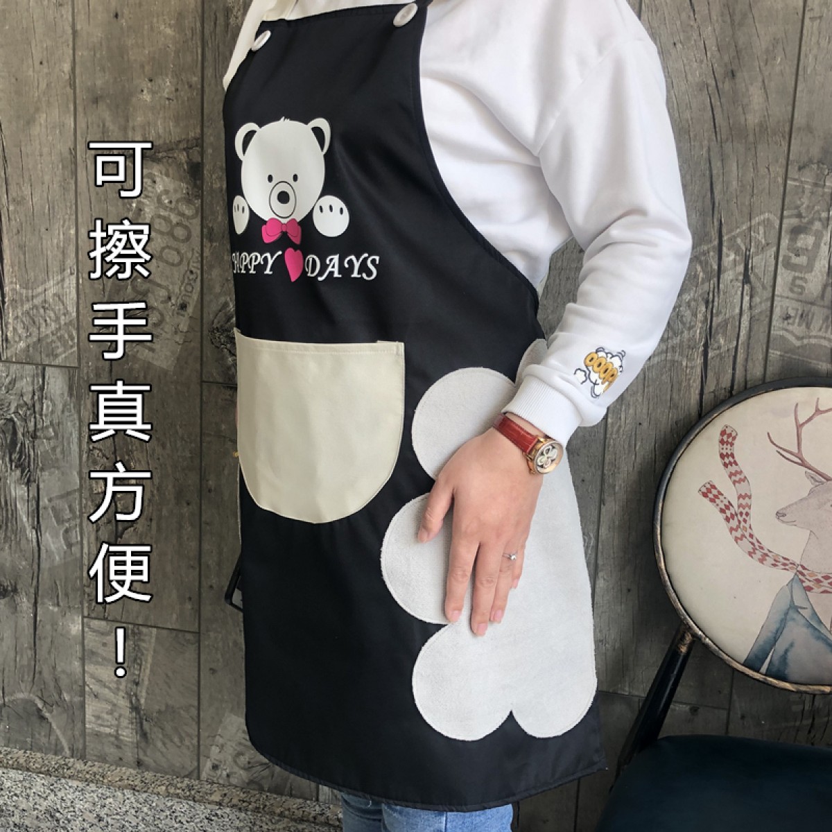 商品名称:国产 可擦手围裙厨房家用防水防油污女时尚可爱日式做饭工作服定制LOGO